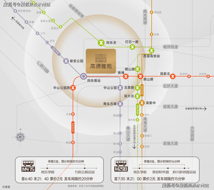 荔源雅苑距离12号线同乐南站900米距离,还有建设中的15号线同乐关站双地铁口物业,贯穿前海、后海、南山、宝安等重要片区,环经济发展核心区域。可以快速通达宝安中心区,南山高新园,深圳超级总部基地,前海自贸区。周边还有南坪快速,南山大道,北环大道,京港澳高速等交通要道,出行便捷。