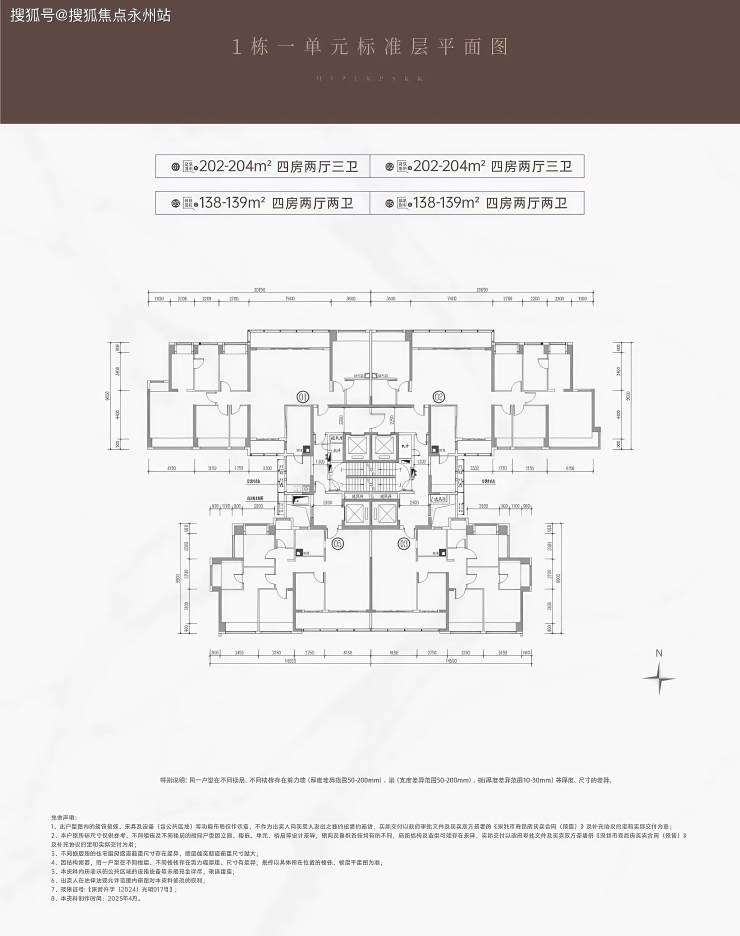 建面138-139㎡四房两厅两卫和202-204㎡四房两厅三卫两种户型,均为大平层设计,层高3.15米,每户配备独立电梯,私密性与仪式感兼备