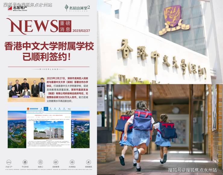 学校方面,自带1所18班制幼儿园,家门口的香港中文大学(深圳)附属时进学校,该校是1所九年制公办学校,规划有54个教学班,也是香港中文大学(深圳)基础教育集团继大运的道远学校、知新学校之后,与龙岗区政府合作共建的第三所附属学校,在2023年的2月27日上午,香港中文大学(深圳)附属时进学校与龙岗区政府正式进行了合作办学签约仪式。