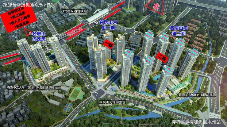 项目位于龙岗区园山街道3号地铁线永湖站东南侧150米,地处龙岗黄金三角地带,北邻大运新城,东侧是阿波罗未来产业城,西南侧是横岗中心片区。