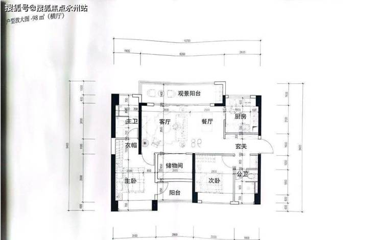 3梯6户,户型为88㎡1户,98㎡横厅1户、竖厅3户,118㎡1户;