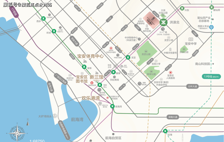 项目紧邻地铁5号线洪浪北站、主干道—宝安黄金发展中轴创业二路,近107国道,与深圳宝安国际机场直线距离约11公里,链接万象都会生活。