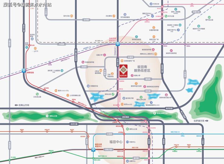 「远洋天萃」位于龙岗坂田街道五和大道与光雅园路交汇处东北侧,西侧与龙华民治紧密相连,南侧紧邻龙华梅林关。
