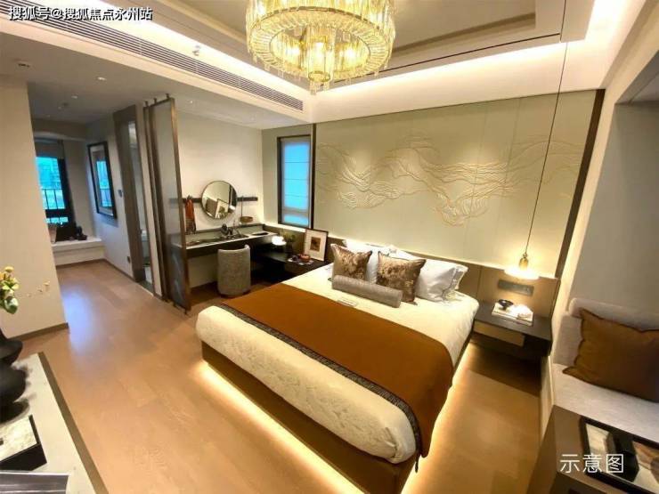 约3.5m大开间,带双向大面宽飘窗和独立卫生间,空间十分阔绰:配备约2.6m超长步入式衣帽间,尽情容纳二人世界的百般美好。拂晓,当晨曦透窗映入卧室,唤醒一天的活力;夜晚,依偎飘窗前揽风光叙情话,枕星月相拥而眠。