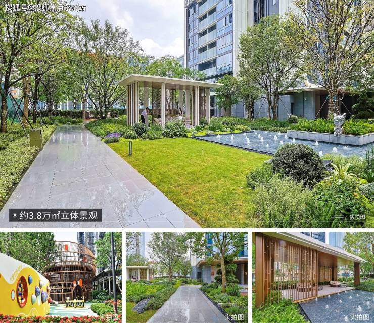 约3.8万㎡,带400m跑道,配置泳池和竹木地面放松休闲区,在小区内营造轻松的氛围,社区采用集中提升大堂,高16.5m,宽27m,星空顶,一楼大堂还没做好。三楼各单元门的入户大堂已经基本成型,这个归家的仪式感还是拉很满的。(深圳宏发悦见倾湖售楼处电话:400-992-0669)