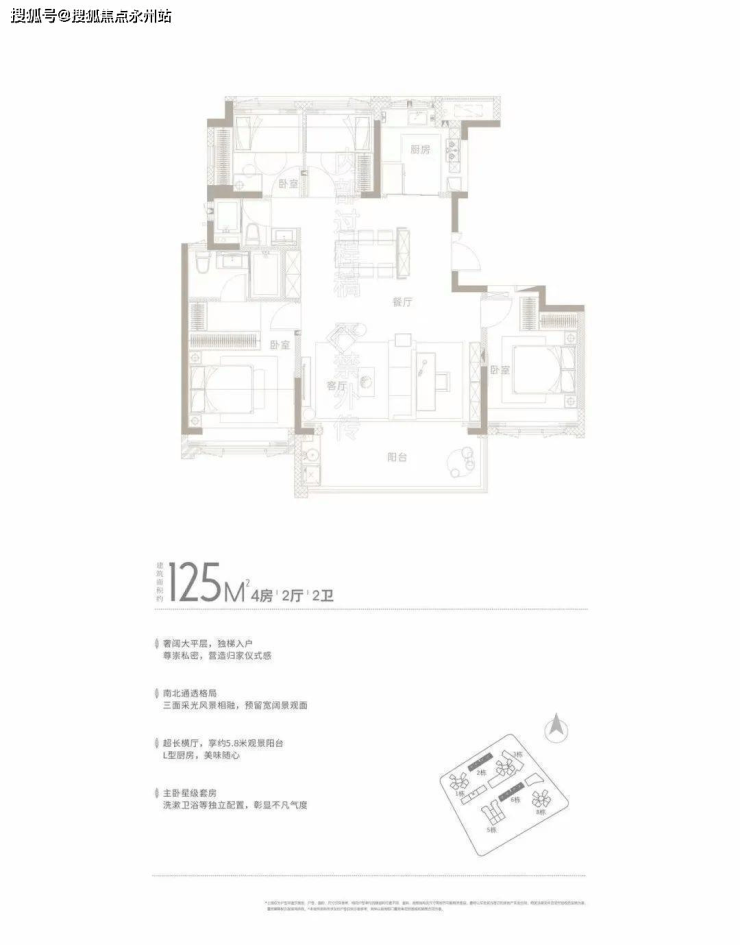 项目的商品房分布在1、2、3、6、8栋,楼层的高低不一,包含了超高层、高层以及小高层建筑,其中最大户型建面约125㎡房源全部位于在小区位置最好的2栋和6栋,而且都是小高层板房设计,通风采光景观俱佳。