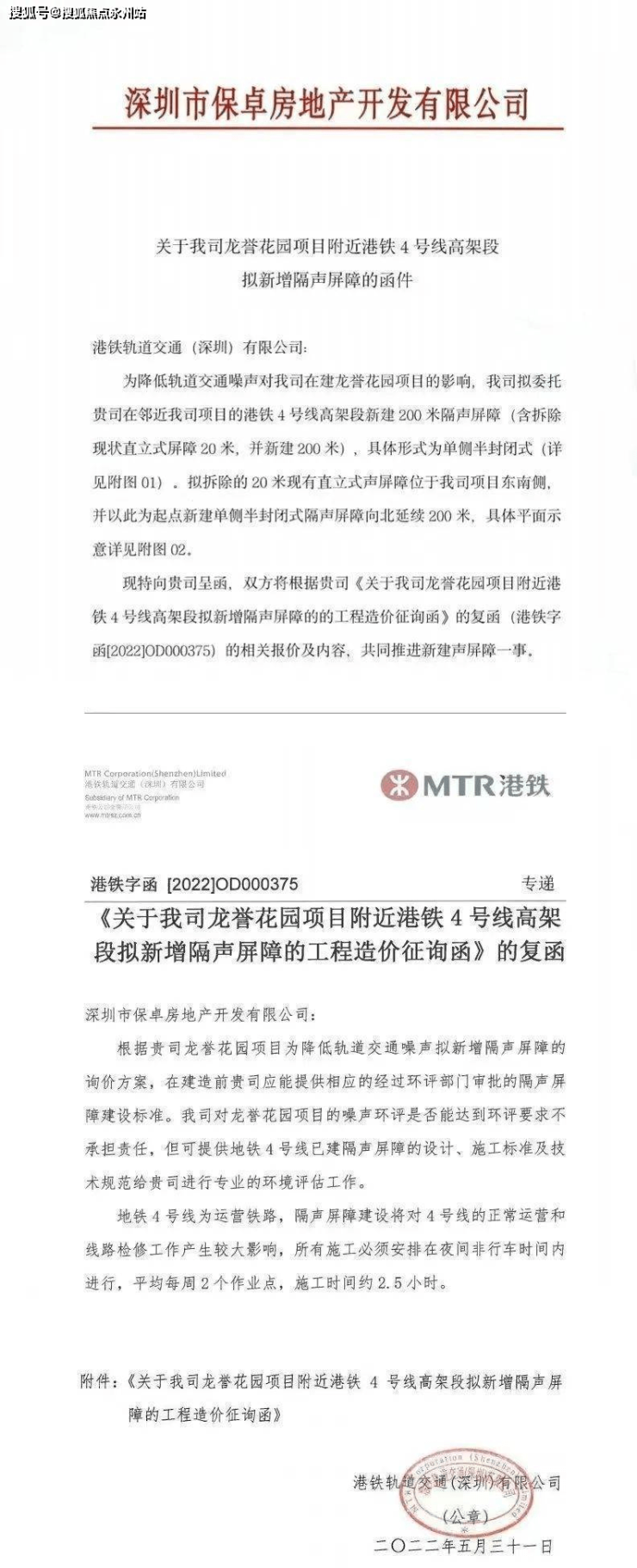 据最新的规划,保利招商龙誉项目方计划将出资建设港铁4号线临近项目段的单侧半封闭式隔音屏障,而且该规划已经被主管部门采纳,完工后将有效降低地铁运行对项目的噪音影响。