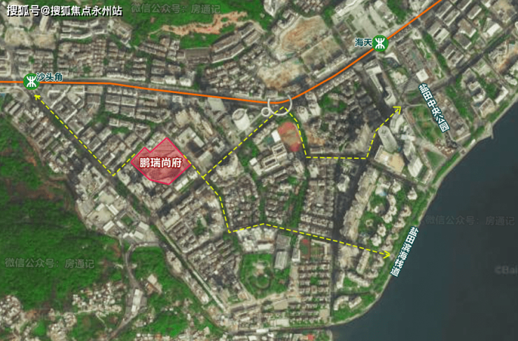 「鹏瑞尚府」距离地铁2/8线沙头角站约600米—距离盐田滨海栈道约1.1公里—距离盐田中央公园约1.3公里