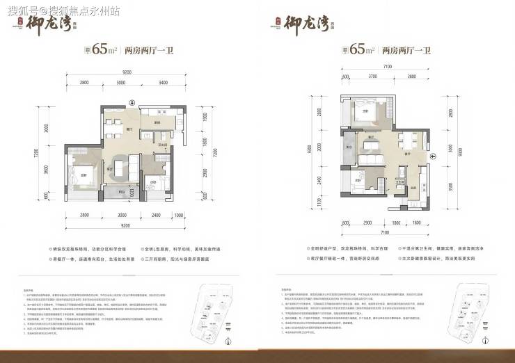 建面约 65㎡两房:总价门槛低,适合单身或新婚家庭,阳台直面园林景观。