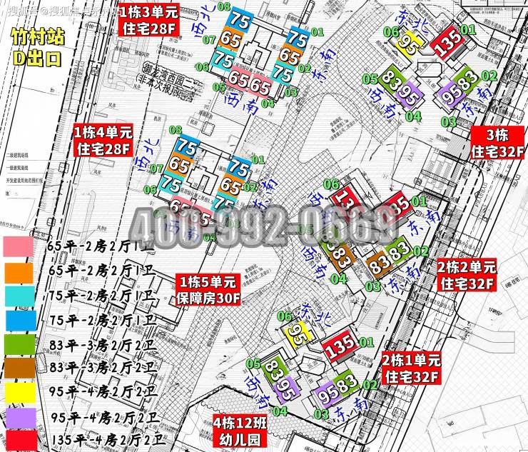 一期01地块推出建面约65-135㎡的 2-4房住宅,其中95㎡户型可实现四房设计,主打高性价比刚需产品。具体分布如下: