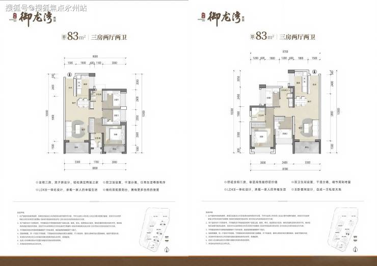 83㎡三房两卫:分布2栋1/2单元02/03/04/05户型