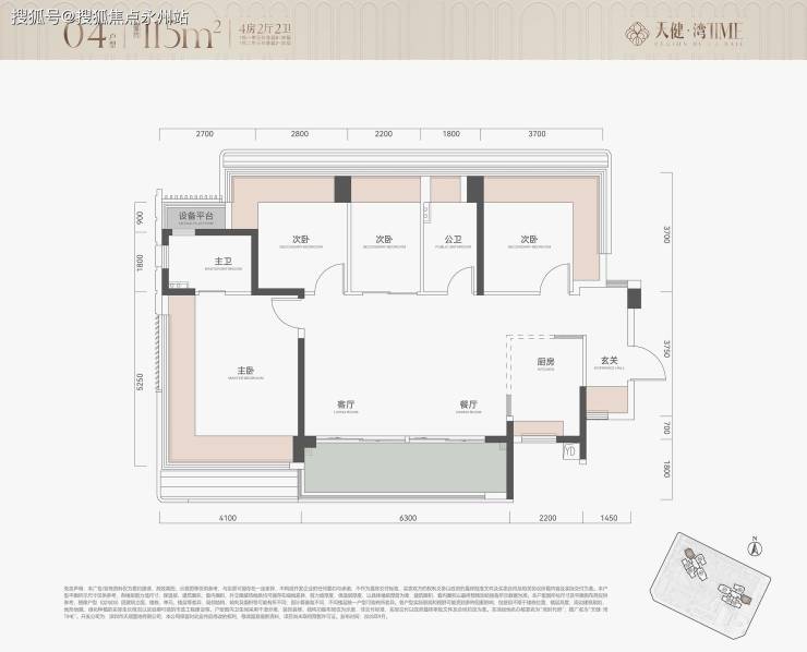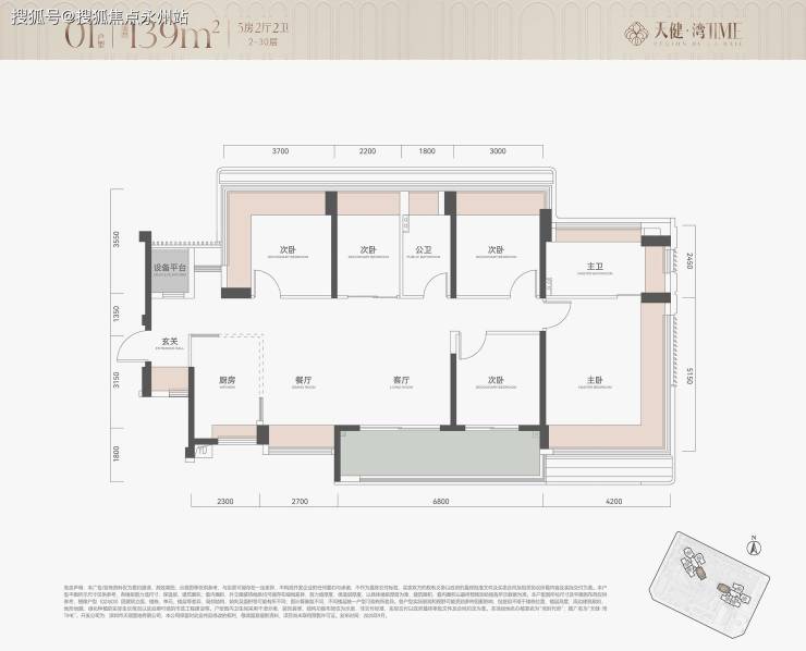 项目规划建设2栋100米内的30层住宅,采用2梯4户设计,共推出约290套房源,户型涵盖113㎡四房与139㎡五房,其中,113㎡四房为绝对主力户型。户型朝向以朝南、西南为主,仅两套房源朝东北方向,可直面金众区域。
