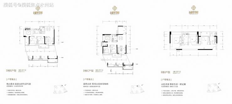 90-91㎡(3房2厅1卫):南向设计,双景观阳台(如D栋E、C、D户型),部分配备大厨房,通风采光佳。