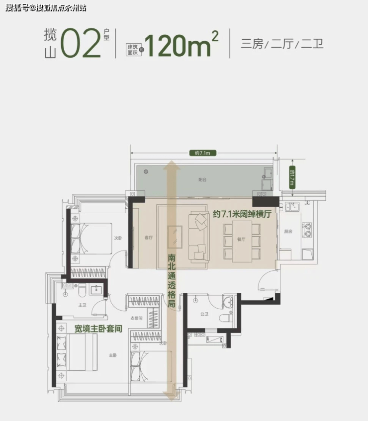 从项目方给的数据来看,120㎡做3房,74%的使用率,得房率偏低。