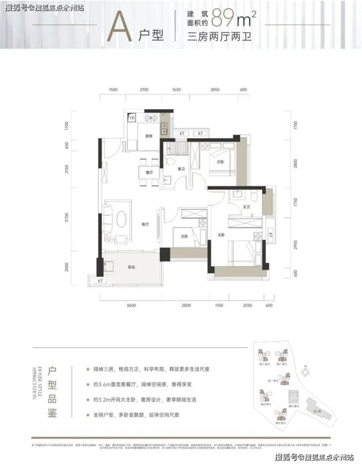 89㎡的3房2厅2卫,折后总价约190万/套起,折后单价约2.15万/㎡