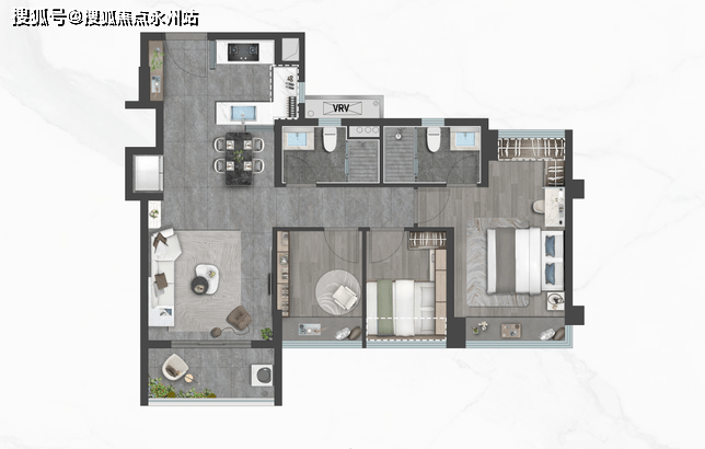 御雲:建面约80㎡,三室两厅1.9卫,创新型1.9卫设计,臻享从容生活