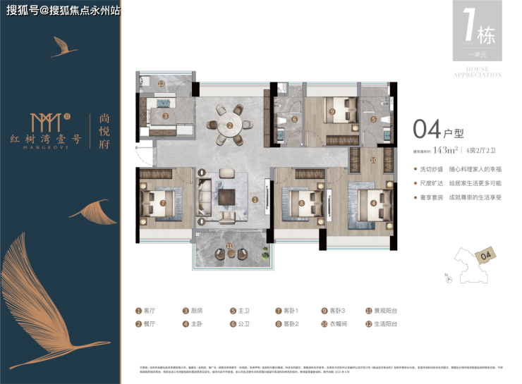 建面约143平户型景观视野