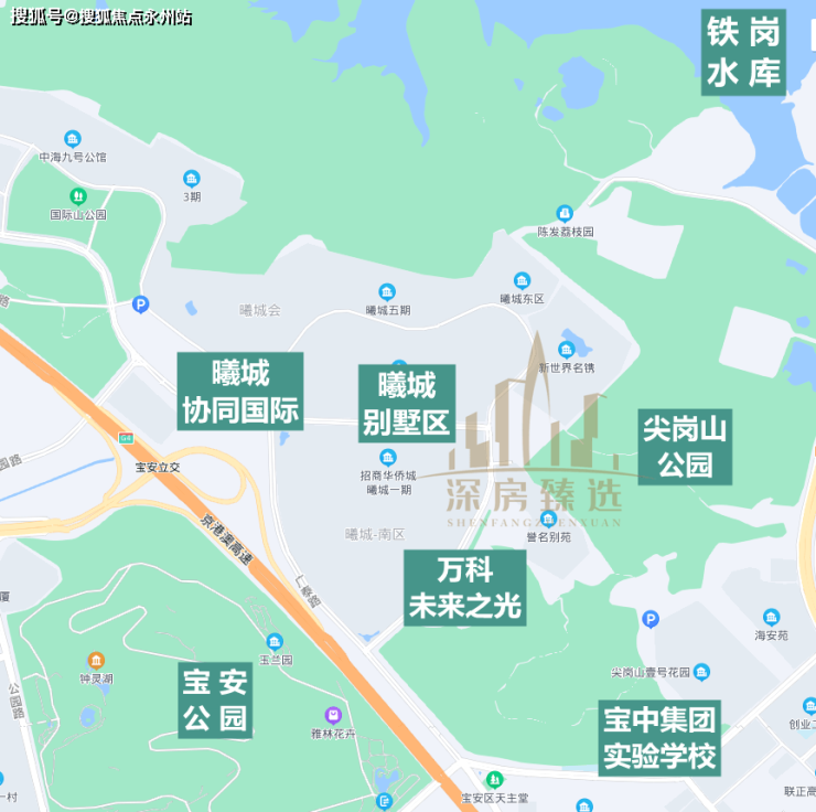 教育资源:项目配建有幼儿园,直线距离约730米有宝安中学集团实验学校,约840米是曦城协同国际学校,通过这所学校可选择就读美国高中。另外,附近还有南科大附中宝安学校在建。