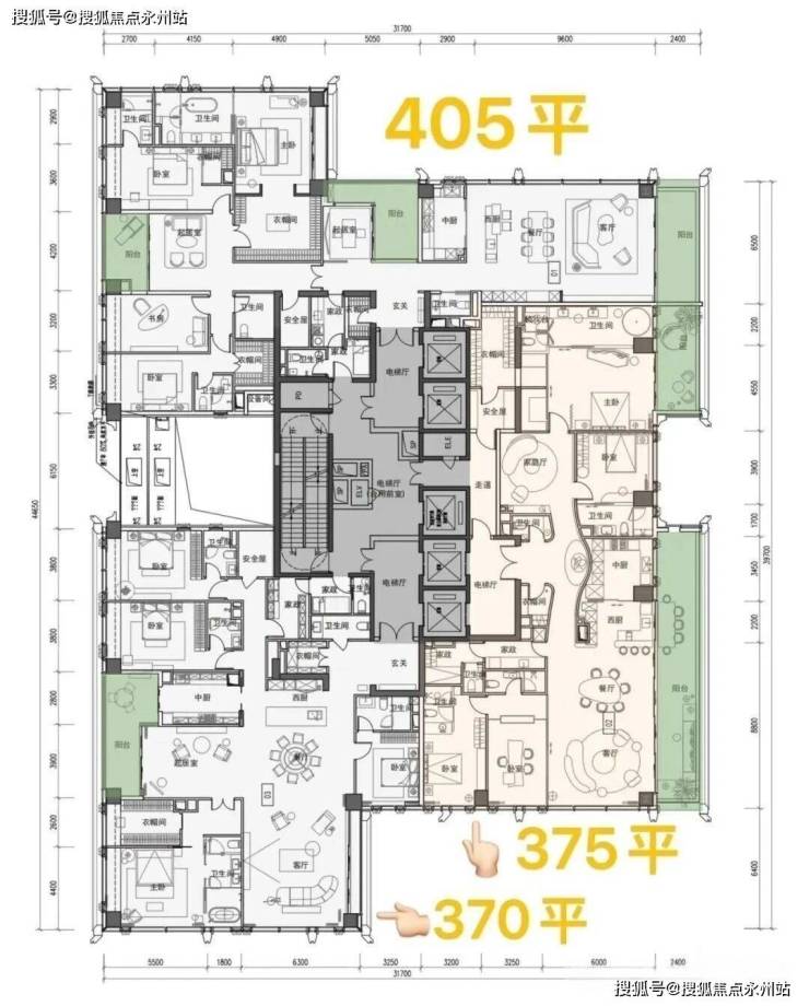 户型:面积约209㎡-270㎡--300㎡-400㎡-500㎡-700㎡-1050㎡,的大平层豪宅。