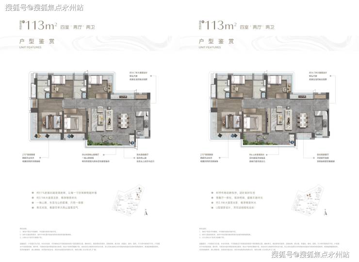 113㎡的4房2卫,南北通户型,总价约829-1019万,单价7.33-9.01万/平。