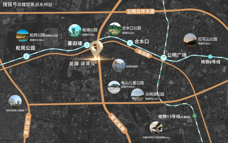 3公里10大优质学校:1公里内,5大优质学府环绕。咫尺54班九年一贯制学校(规划中)、60班九年一贯制学校(规划中),近揽光明区高级中学(集团)科育学校、深圳市光明区理创实验学校。3公里内,深圳外国语学校、深圳公明中学等精英学府在侧。全龄高质教育体系,一站护航。3公里内,共10所优质学府环绕。