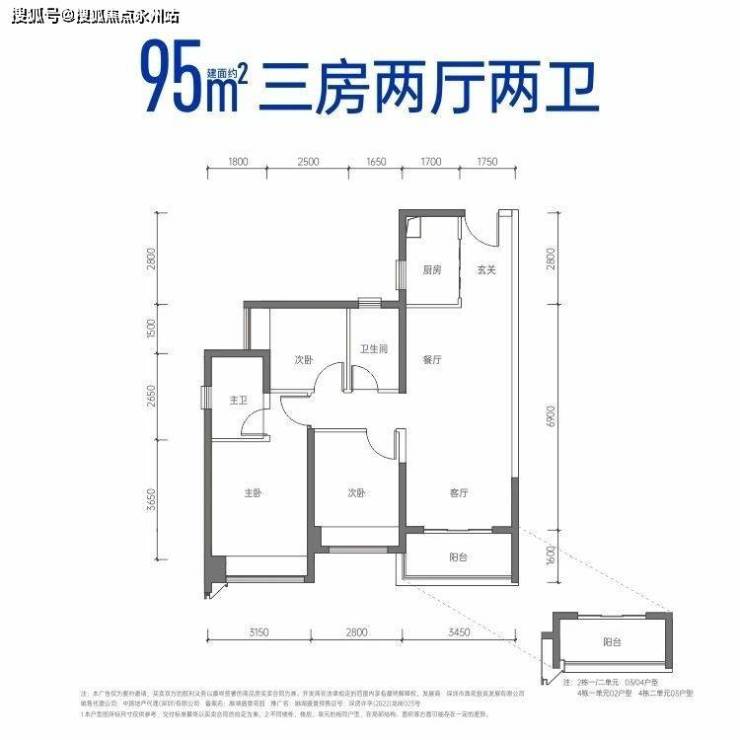建面约95㎡三房两厅两卫