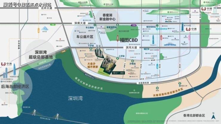 超300亿大金沙规划,唯一接驳福田CBD和深圳湾的滨海新城,北邻香蜜湖新金融中心和车公庙2049未来之城,南接河套深港科创合作区,以政府资源的倾斜和前瞻的规划,成为最具生长力片区,主推福田CAZ转型。