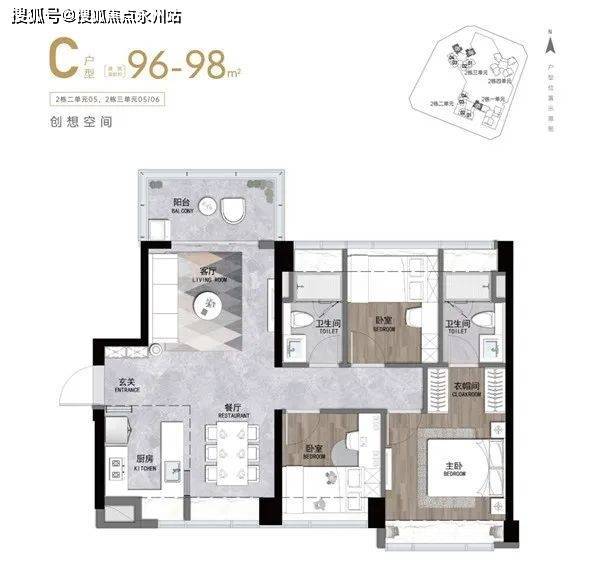 【总层高】一单元3梯5户,42层/二、三单元3梯6户.47层
