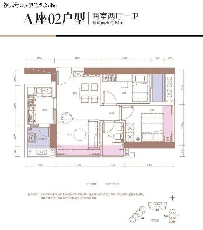 在售户型:64平(二房)