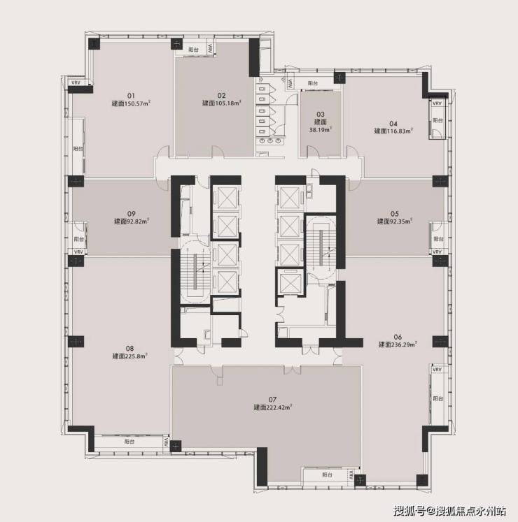 使用率与梯户比:使用率约68%,在商办项目中处于中上游水平;8梯9户的梯户比,减少等待时间,提升出行效率,兼顾办公与自住的私密性。